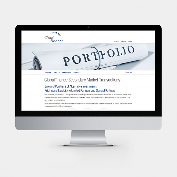 Design und Umsetzung einer Website für die Firma GlobalFinance aus München.